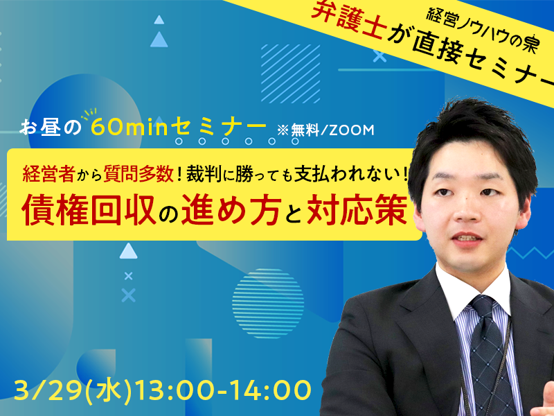 今回は、日比谷タックス&ロー弁護士法人 堀田 陽平先生にご登壇いただき、債権回収について解説。取引相手の信用力を確認する必要性や、債権回収の基本ステップ、万が一に備えた対応策などをお話しいただきます。