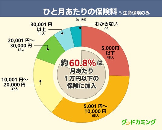 - ひと月あたりの生命保険料は「10,000円以下」が60.8%