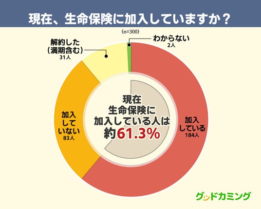 保険の無料相談サービス「グッドカミング」は生命保険への加入率、ひと月あたりの保険料、加入している生命保険の種類など、生命保険に関するアンケートを独自で調査・集計しました。