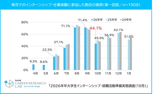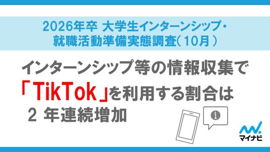 株式会社マイナビ(本社:東京都千代田区、代表取締役 社長執行役員:土屋芳明)は、2026年卒業予定の全国の大学生、大学院生を対象に実施した、「マイナビ 2026年卒 大学生インターンシップ・就職活動準備実態調査(10月)」の結果を発表しました。