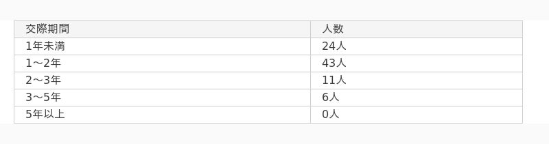 交際期間 結婚相談所・マッチングアプリ利用者は1年未満の結婚が約28.6%で短期結婚が目立つ。