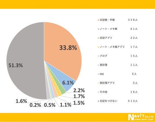 2.2%と続いています。ほとんどの方は日記帳などを使っているようです。