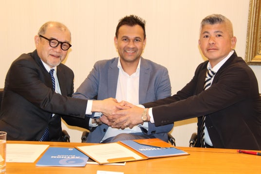 (前列左より)IKG FAS池上代表、TGO Partners B.V. 藤後代表(ビジネスパートナー)。(後列左より)AGS大槻国際部門長、HLS齋藤マネージング・パートナー、AGS鈴木国際部門担当取締役、HLS渡慶次パートナー