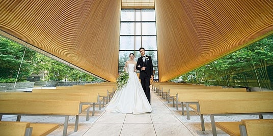 ・隈研吾さんのデザイナーズ空間が大好きで素敵!近いの場所でもある挙式会場の雰囲気が抜群に良い。