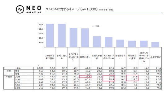 前掲した設問【コンビニに対するイメージ】でも示唆した通り、40代以上は“生活インフラ”としての利便性を重視する一方で、20代~30代はコンビニを“目新しい商品・限定キャンペーンが楽しめる場”と捉える傾向があると考えられます。
