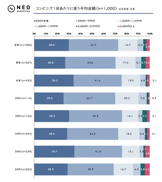 ■コンビニで1回あたりに使う平均金額(n= 1,000)