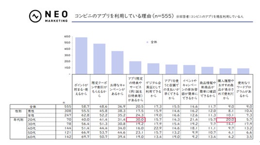 さらに20代は「商品情報や新商品が簡単に確認できるから」(15.7%)や「購入履歴やおすすめ商品が表示されて便利だから」(20.0%)も他の年代より高く、アプリによる情報提供を好意的に受け取っている様子がうかがえます。
