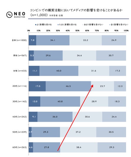 ■コンビニでの購買活動においてメディアの影響を受けることがあるか(n= 1,000)