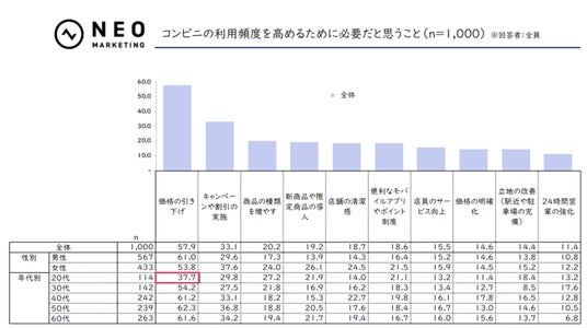 コンビニの利用頻度を高めるために、必要だと思うことをお聞きしました。