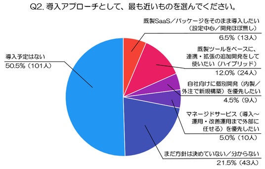 自社に適した導入方法を模索している段階と考えられ、今後の市場動向や成功事例の蓄積によって意思決定が進む可能性があります。