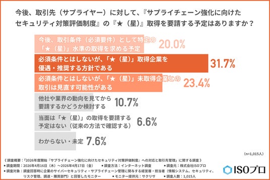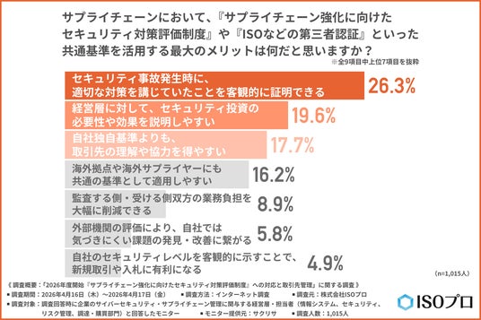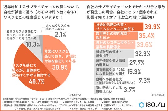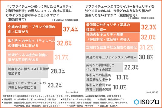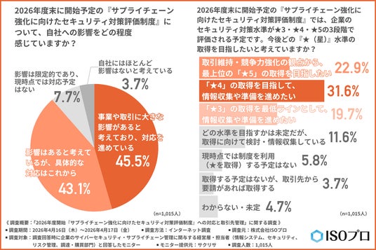 株式会社ISOプロ(本社:東京都新宿区、代表取締役:米田 泰三)は、企業のサイバーセキュリティ・サプライチェーン管理に関与する経営層・担当者を対象に、「2026年度開始『サプライチェーン強化に向けたセキュリティ対策評価制度』への対応と取引先管理」に関する調査を行いました。